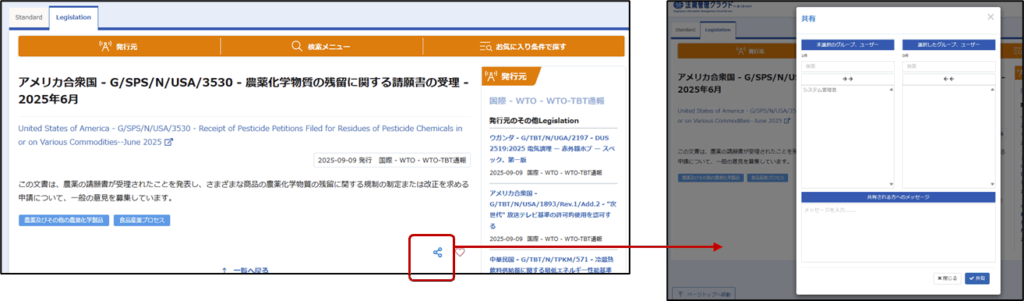 ・ (Legislation画面)掲載情報の他ユーザへの共有
