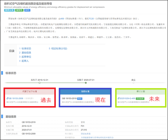 ・前頁の緑の部分に視点を変えると、GB 19153-2019は過去に当たるので、赤になっています。