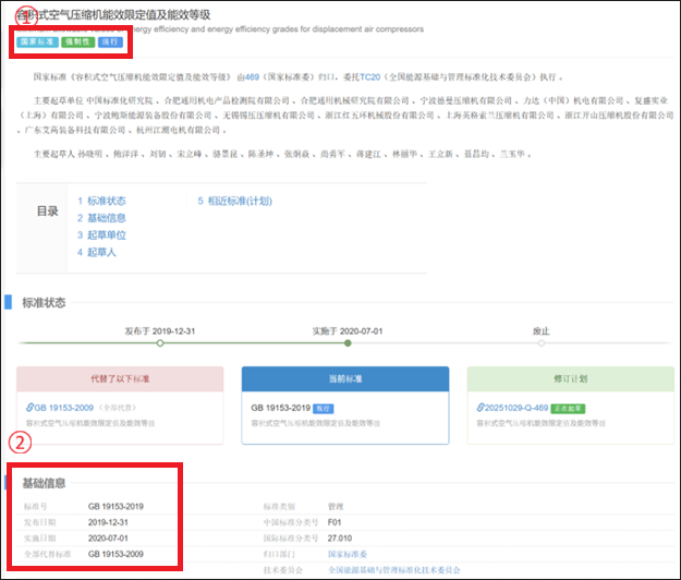 以下は「GB 19153-2019」を例に、SACサイトの検索画面および規格ページの見方を解説します。