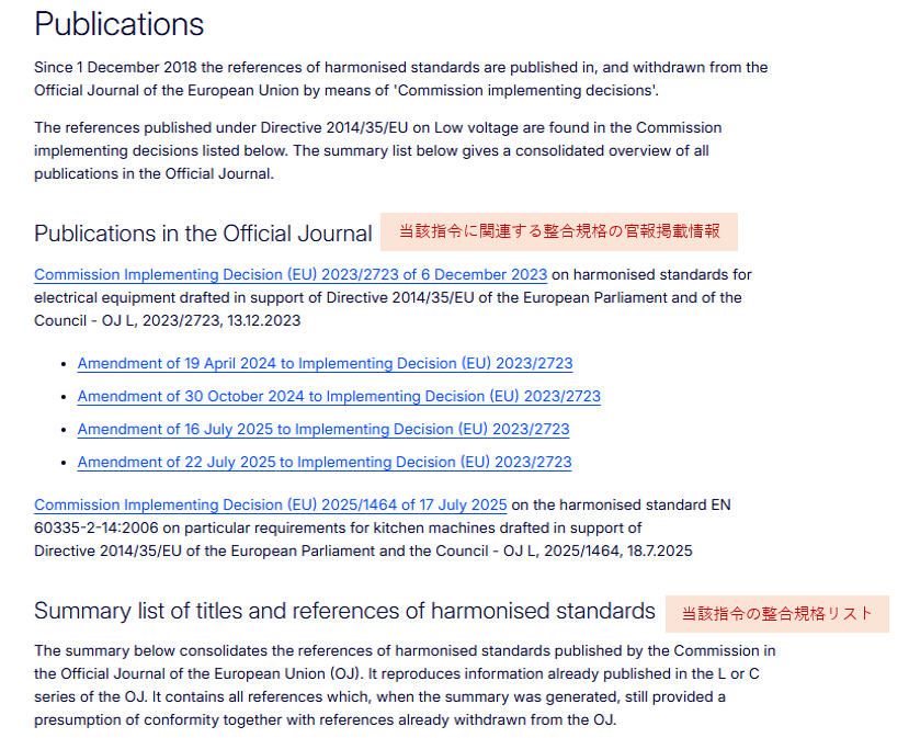 つまり、「この法令に適合するために、これらの規格を使えばよい」とEUが正式に認めた一覧表のことです。