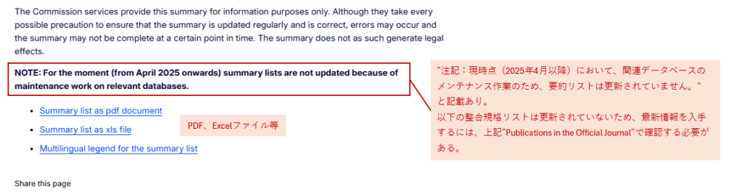 ・官報上で整合規格が発表されてから、整合規格リストとしてまとめられるまで時差が生じるため、